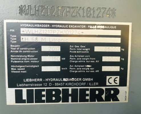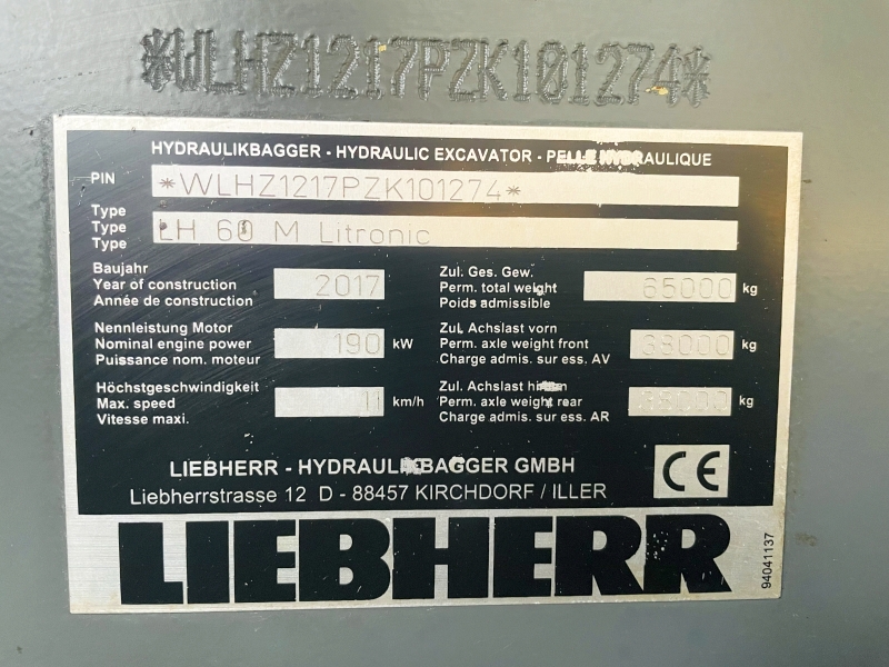 Technische Daten: Liebherr LH60 M Litronic Umschlagbagger gebraucht