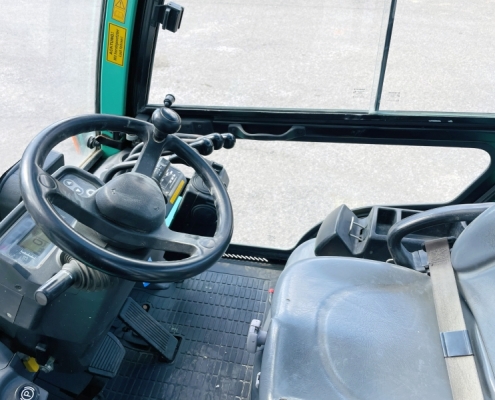 Tragkraft 3300 kg; Hubhöhe 4100 mm, Bauhöhe 2850 mm; Duplexmast; Kabine; Heizung; SE-Bereifung; Wandler; Seitenschieber; Zinkenverstellung; Tragkraft 3,3 t bei Lastabstand 600mm auf 4,1 m Hubhöhe; Zwillingseifen vorne;