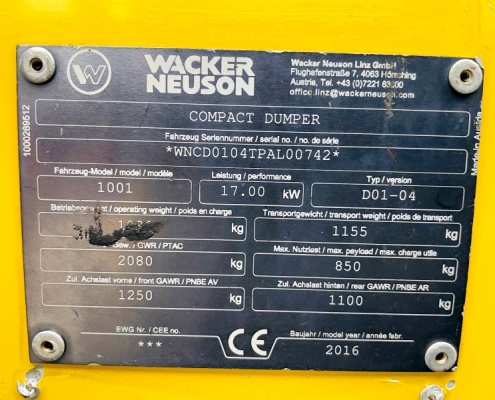 Technische Daten: Neuson 1001 Dumper gebraucht