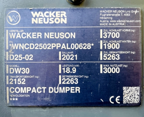 Technische Daten: Neuson DW30 Dumper gebraucht