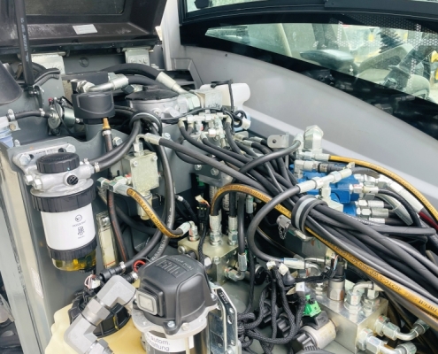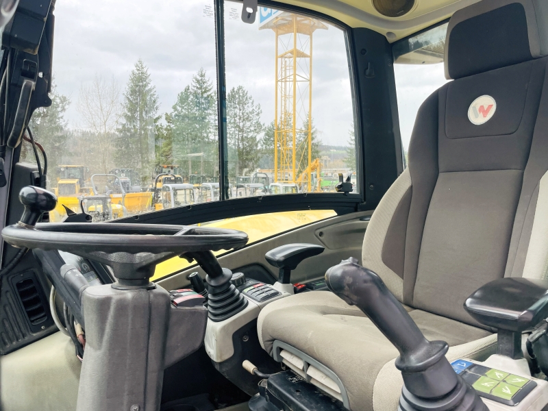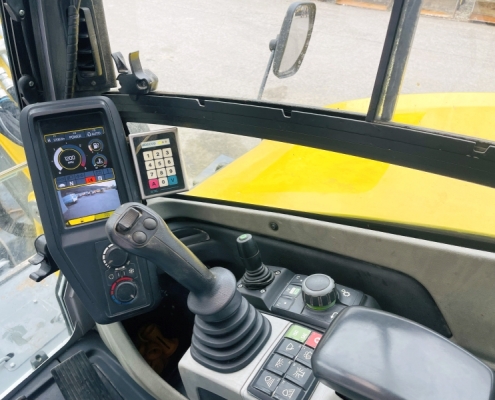 Planierschild und 2-Punkt Abstützung; Kabine; Klimaanlage; Heizung; Zwillingsbereifung; Hydr. Schnellwechsler; Hammer-u.Greiferleitungen; Geteilter Ausleger; Tieflöffel ca. 30 cm; *POWERTILT*; SW Martin; Hydr. Hammer HUPPI – 201 TOKU; 20km/h; Typenschein