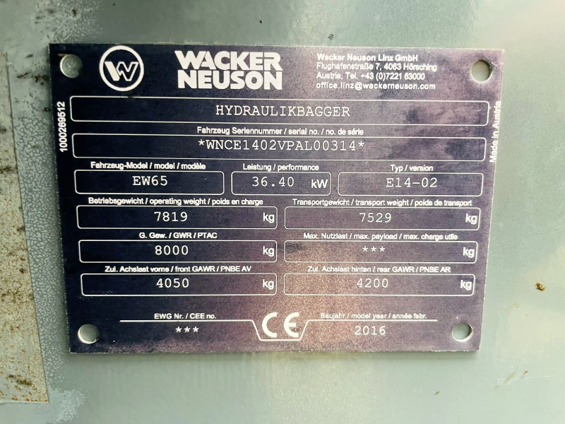 Technische Daten: Neuson EW65 Mobilbagger gebraucht