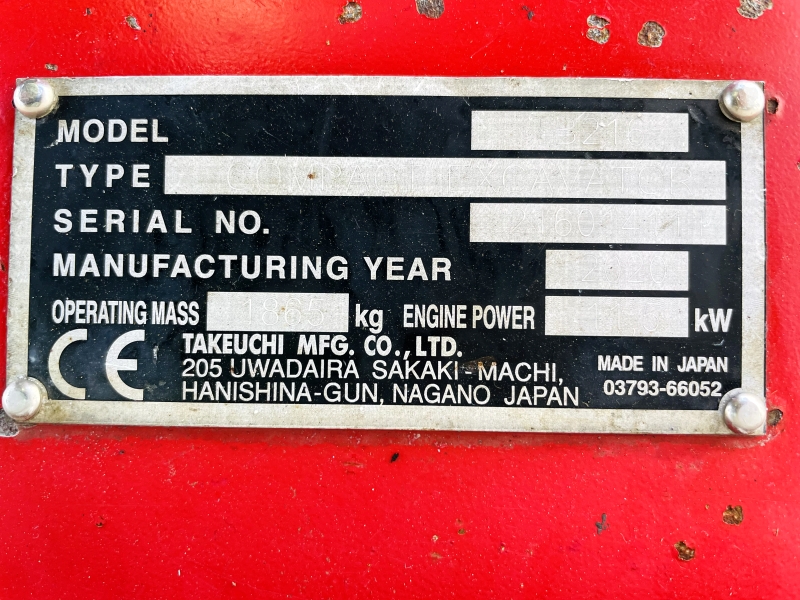 Technische Daten: Takeuchi TB216 Minibagger gebraucht