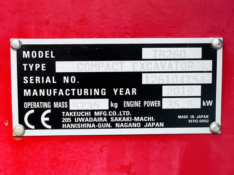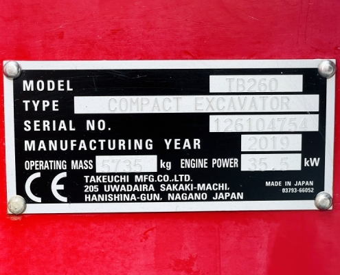 Technische Daten: Takeuchi TB260 Minibagger gebraucht